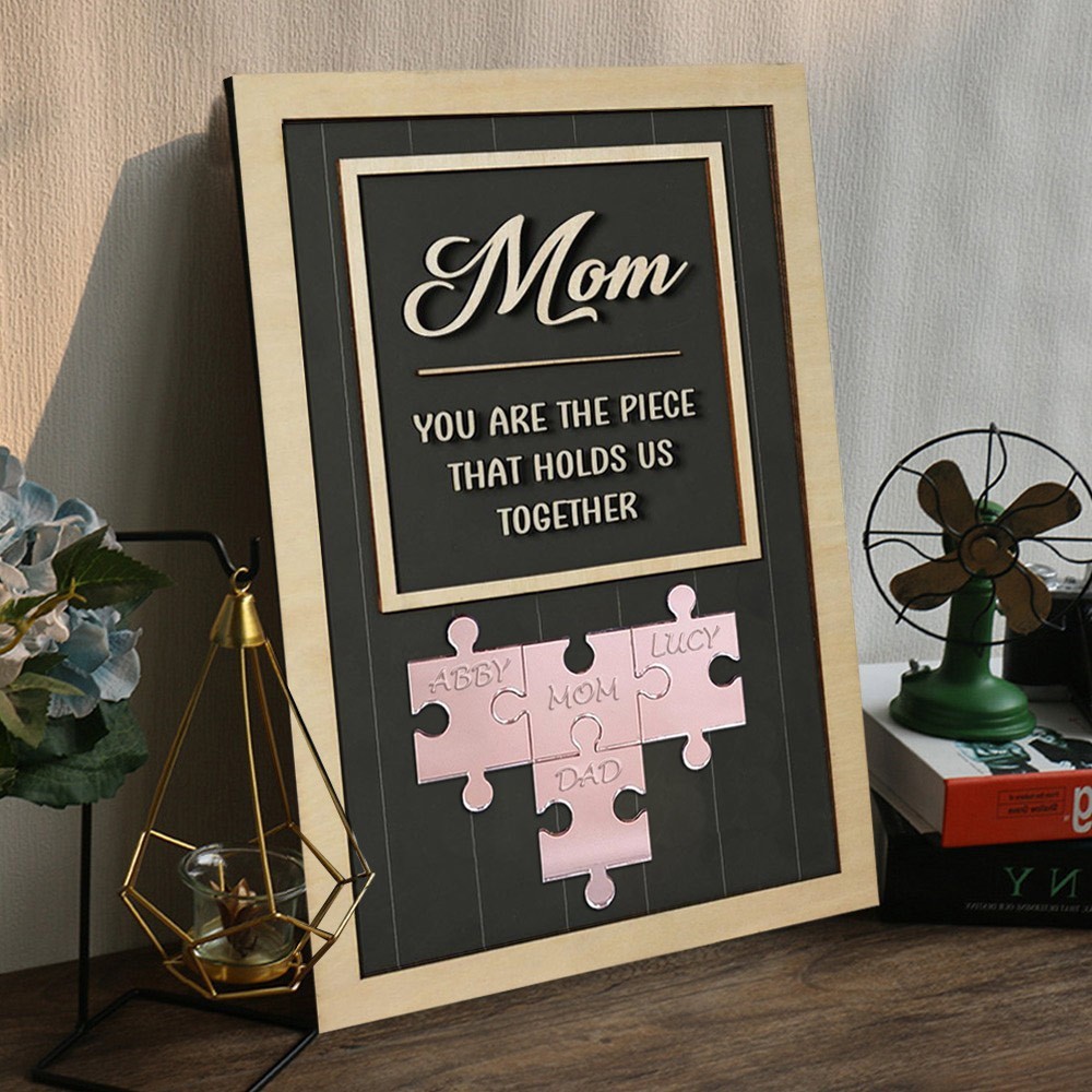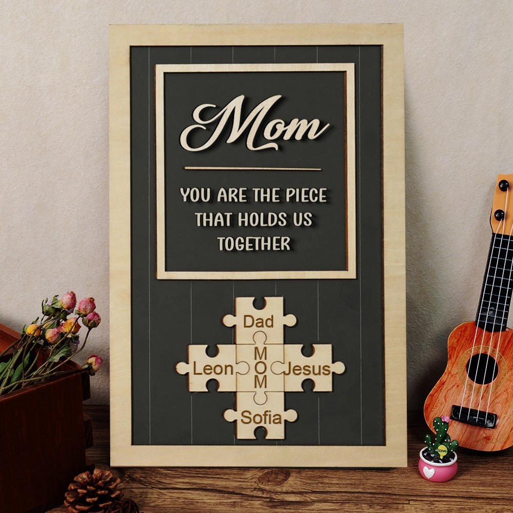 Mom You Are The Piece That Holds Us Together Wooden Puzzle Piece Mother's Day Sign