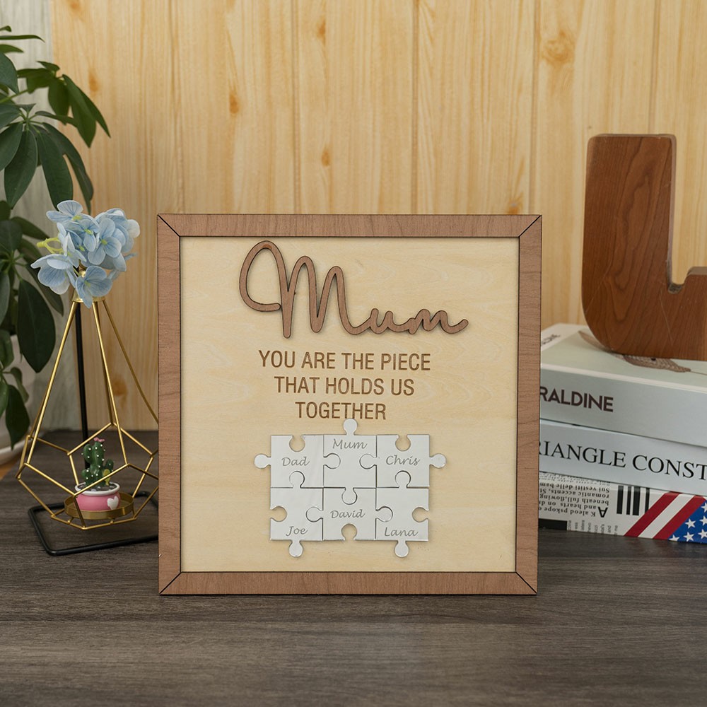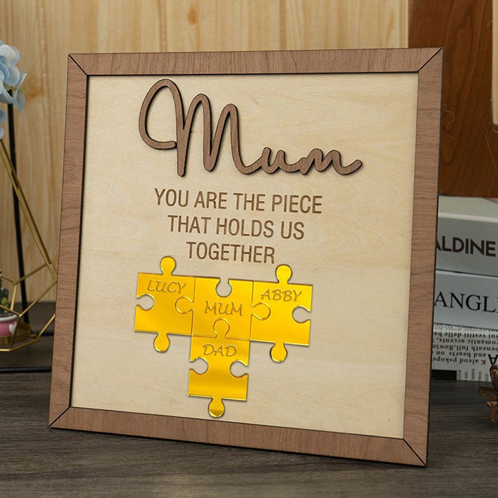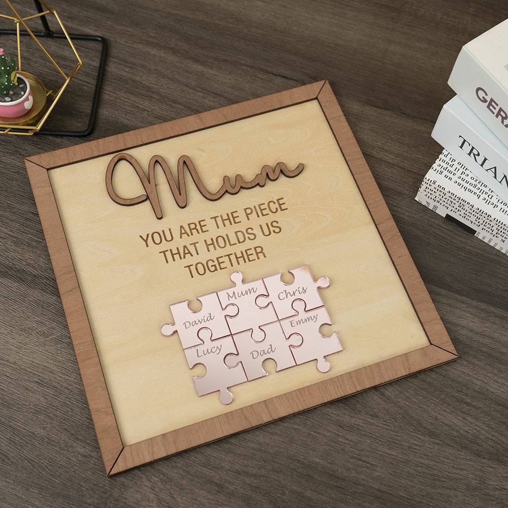 Mom You Are The Piece That Holds Us Together Wooden Puzzle Piece Mother's Day Sign
