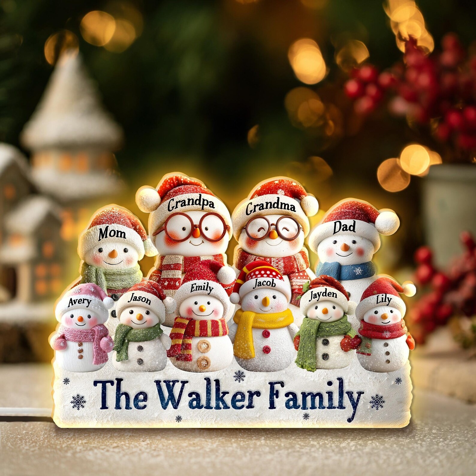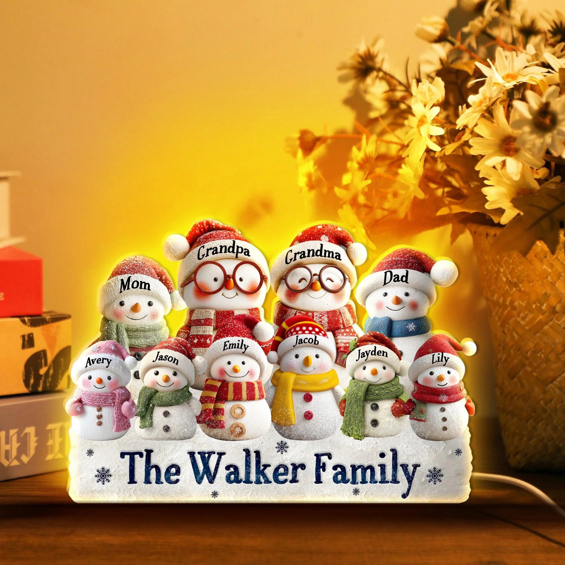 Personalized Snowman Light Box Family Christmas Gift Cozy Winter Home Decor