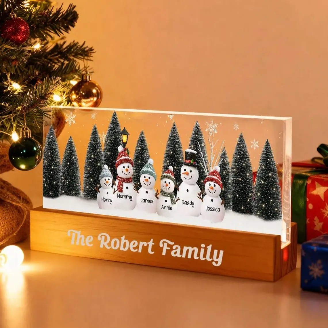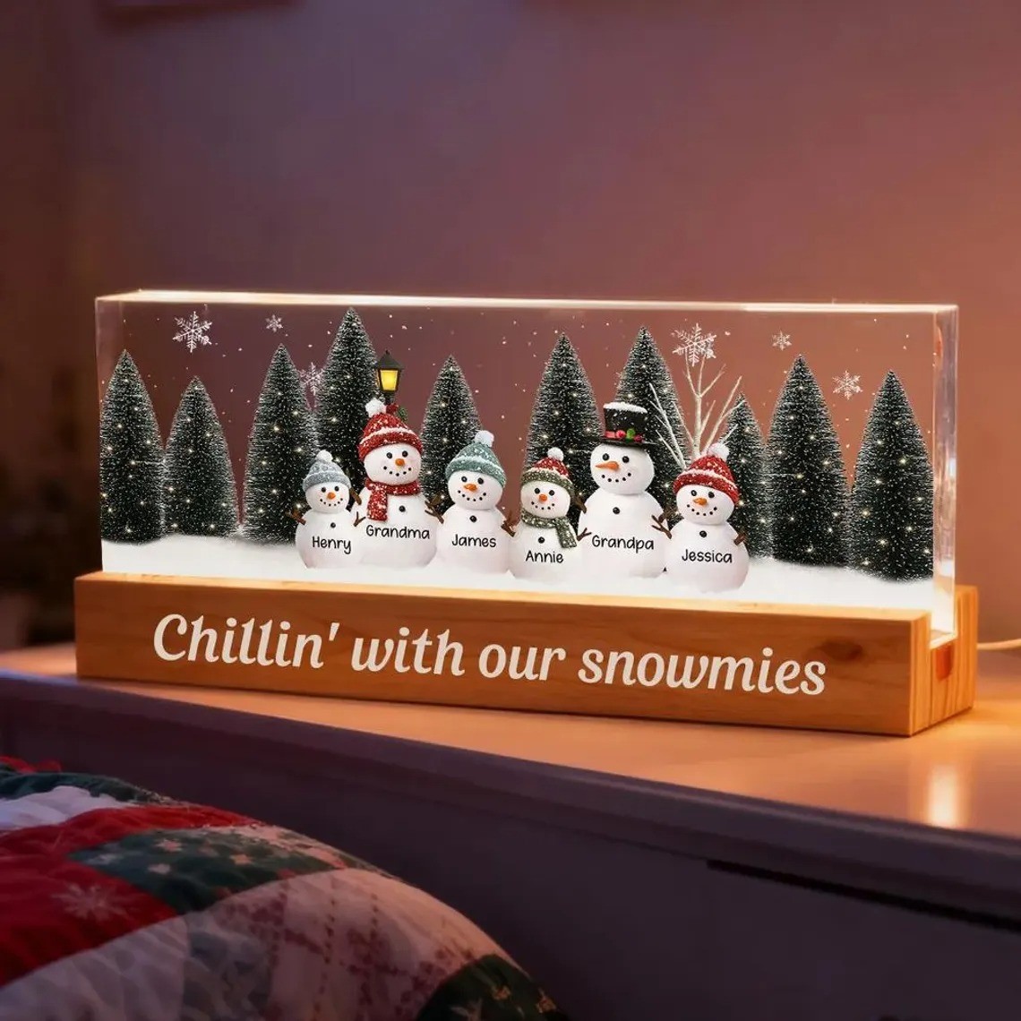 Personalized Snowman Light Box Family Christmas Gift Cozy Winter Home Decor
