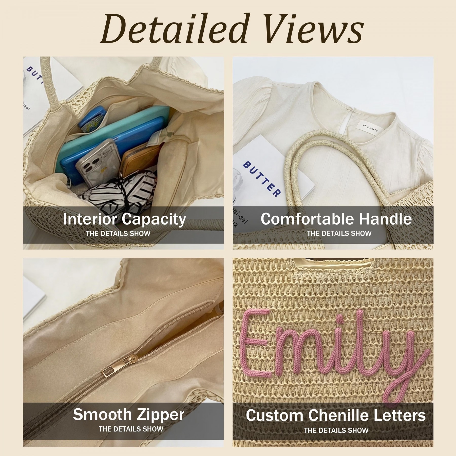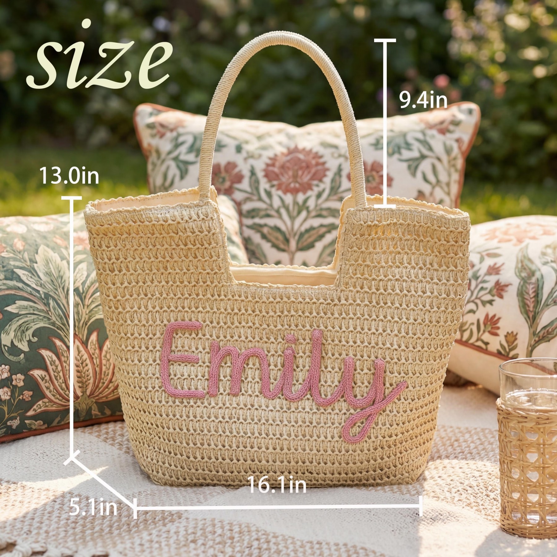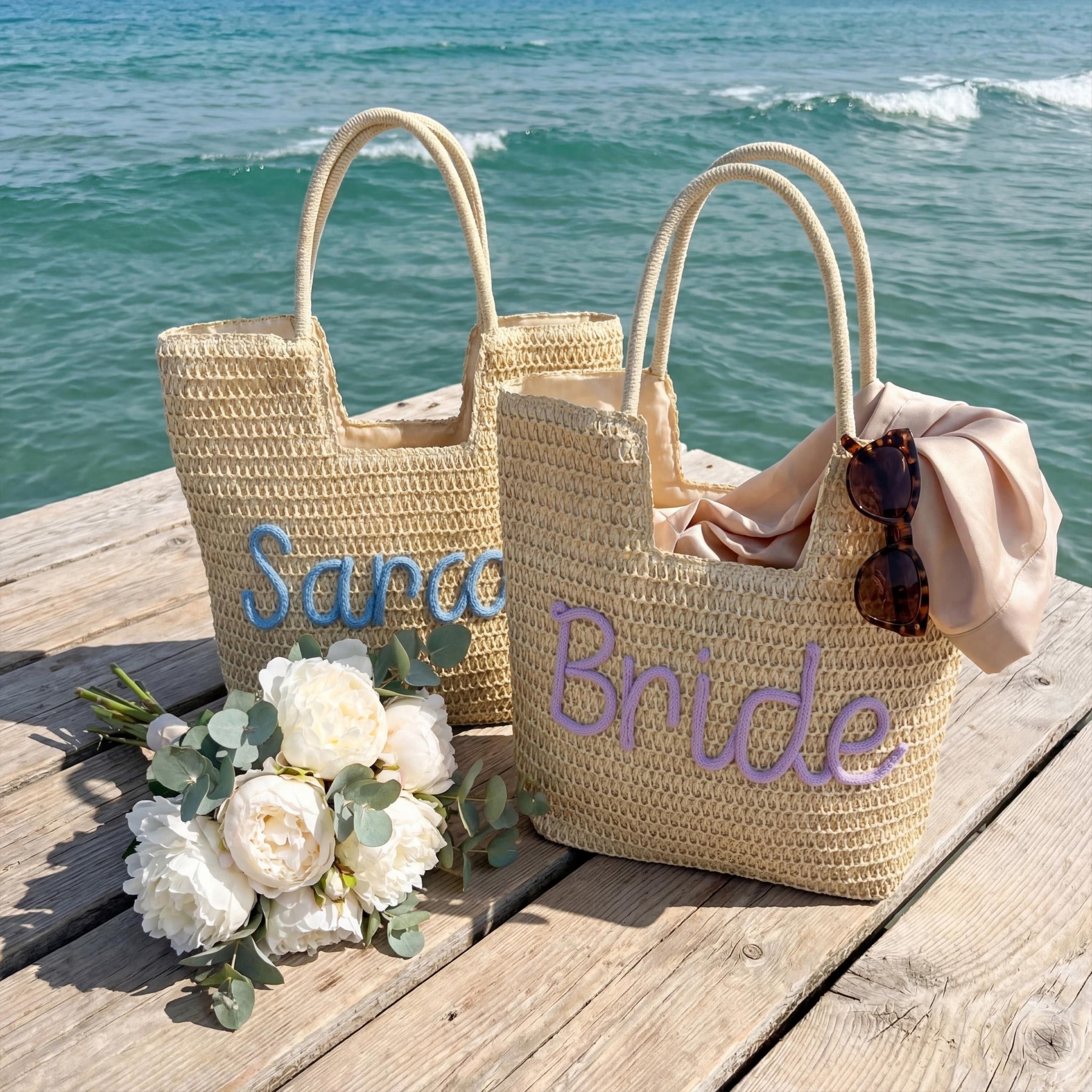 Personalized Summer Beach Bag, Custom 3D Chenille Name Tote, Personalized Girls Trip Gift